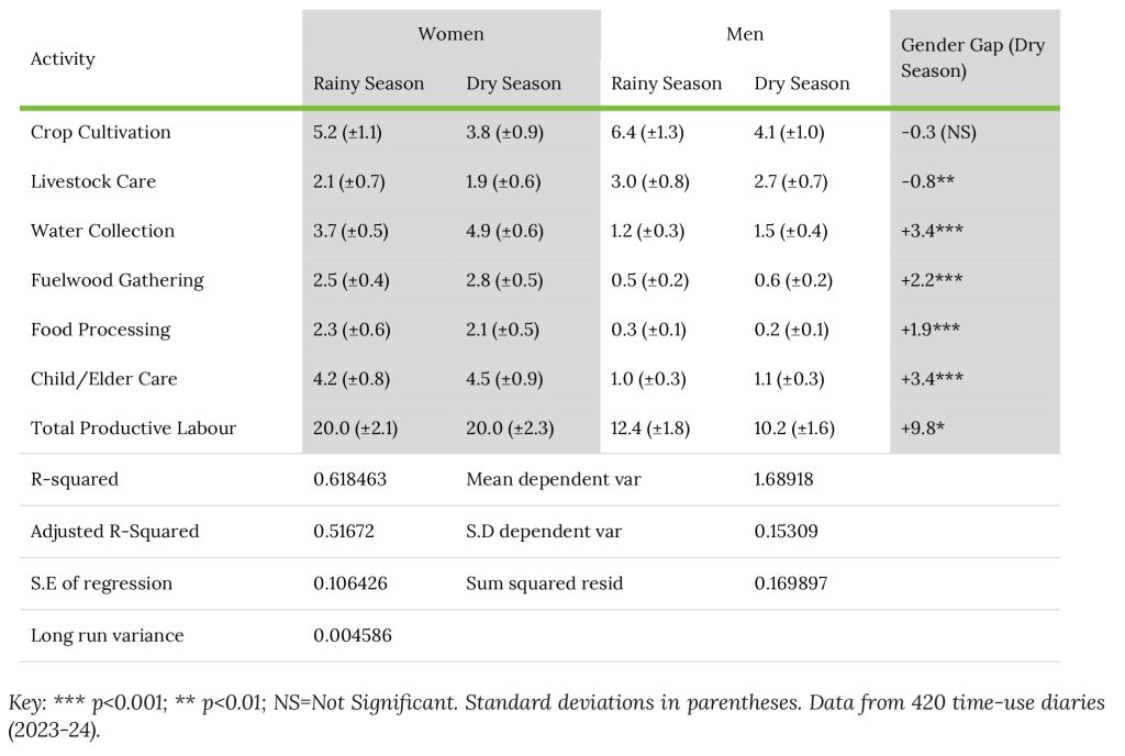 Table 4: Daily Time Allocation by Gender and Agricultural Season (Hours per Day)